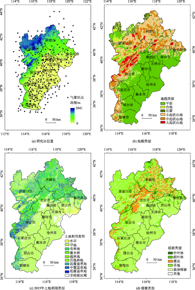 作为气候变化的敏感指示器,植被的物候、生长、空间分布格局等特征及其动态变化主要取决于气候环境中的水热条件,因此在气候变化背景下,气候-植被关系成为了全球变化研究的前沿和热点问题。本文综合平均温度、降水、水汽压、湿度、日照时数、SPEI等气候因子,坡度、坡向海拔等地形因子及人为活动因子,应用地理探测器方法针对2006-2015年京津冀地区不同季节NDVI、不同地貌类型区、不同植被类型区生长季NDVI的定量归因研究,揭示了过去10年间植被时空分布格局,及植被对气候、非气候因素响应的季节差异与区域差异,以期为生态工程的建设与修复提供参考意义。趋势分析表明:①2006-2015年京津冀地区NDVI呈现增加趋势,但存在显著的空间差异,如山地生长季NDVI的增长速率大于平原、台地、丘陵等地;②基于地理探测器的定量归因结果表明,降水是年尺度上NDVI空间分布的主导因子(解释力39.4%),土地利用与降水的交互作用对NDVI的影响最为明显(q=58.2%);③NDVI对气候因子的响应存在季节性及区域性差异,水汽压是春季NDVI空间分布的主导因子,湿度是夏、秋两季的主导因子,土地利用是冬季的主导因子;④影响因子对生长季NDVI的解释力因不同地貌类型区、不同植被类型区而差异显著。
