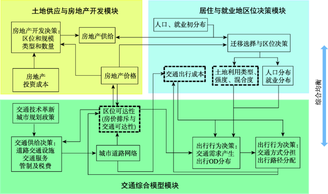 交通与土地利用的协调发展是缓解城市交通拥堵、提升交通水平的关键。城市交通与土地利用一体化模型则是分析和模拟城市交通与土地利用相互作用过程的重要科学支撑。多年来不同国家学者已研发出一些操作模型,并用于城市空间政策的制定研究,但这些模型的核心算法仍需进一步升级完善。本文首先梳理了当前已有主流模型的理论特征,解析了这些模型的核心算法发展及其优缺点;然后针对关键算法的不足,提出新的综合均衡模型,就区位可达性、用地混合度与强度、出行成本3个关键变量的核心算法展开讨论;最后,进一步形成模型各子模块的算法创新,包括考虑增量离散选择过程的居住与就业区位决策模块、细分房地产类型并将土地开发结果动态反馈至城市用地演变的房地产开发模块、采用改进的阻抗函数、小汽车拥有情况和动态出行成本的交通综合模型。本文对于定量化分析模拟城市复杂系统、研发我国城市交通与土地利用一体化模型具有一定的参考价值。