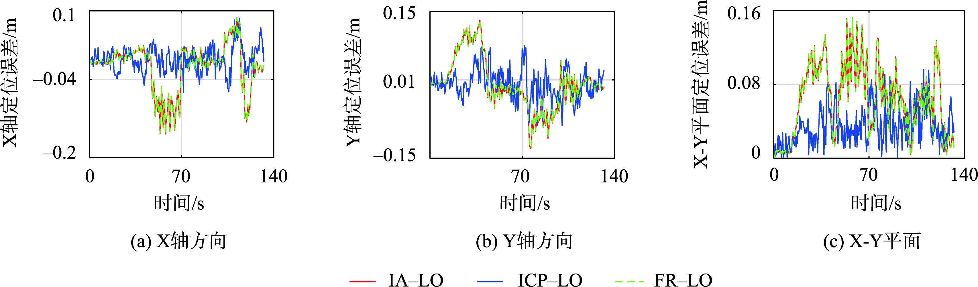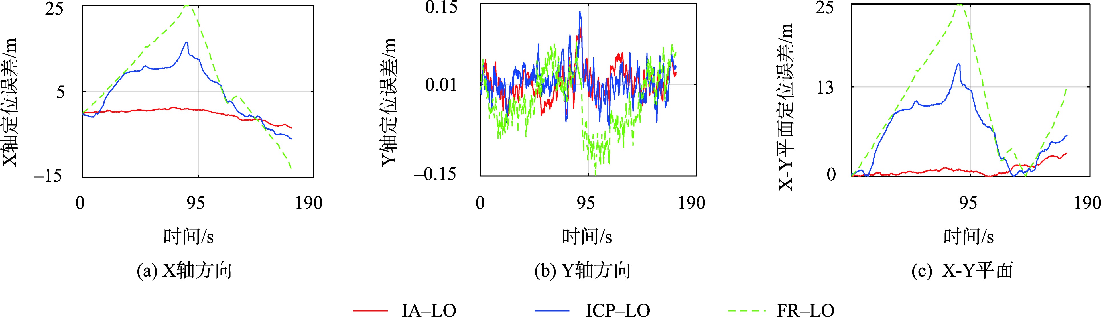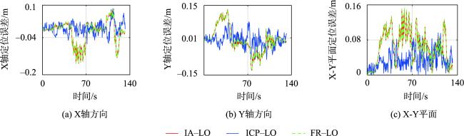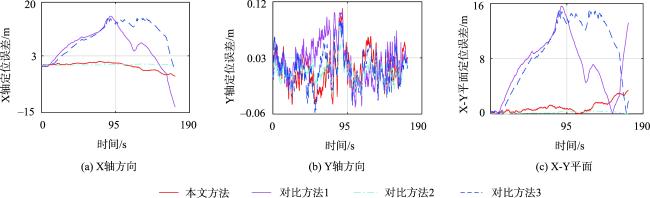 图10 场景3中3种里程计的二维定位误差对比Fig. 10 Comparison of two-dimensional positioning errors of three odometries in scene 3 |