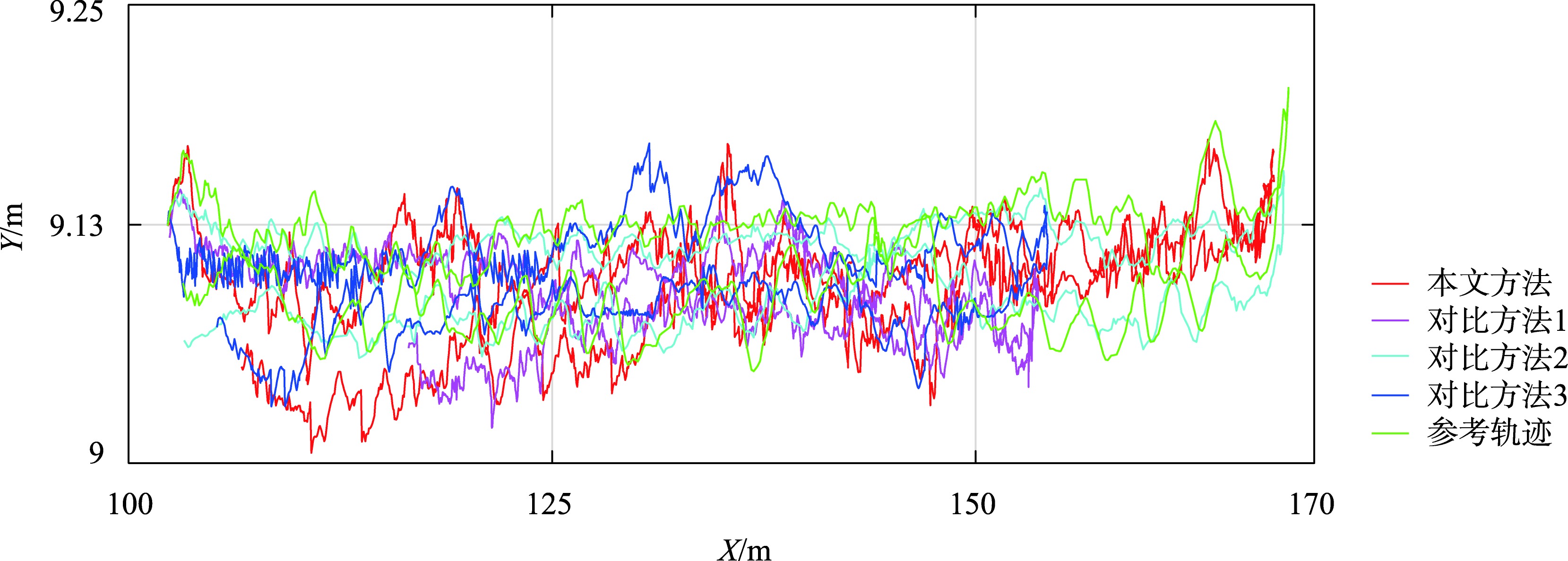 图11 4种方法的X-Y平面二维定位轨迹对比Fig. 11 Comparison of X-Y plane positioning trajectory of four methods |