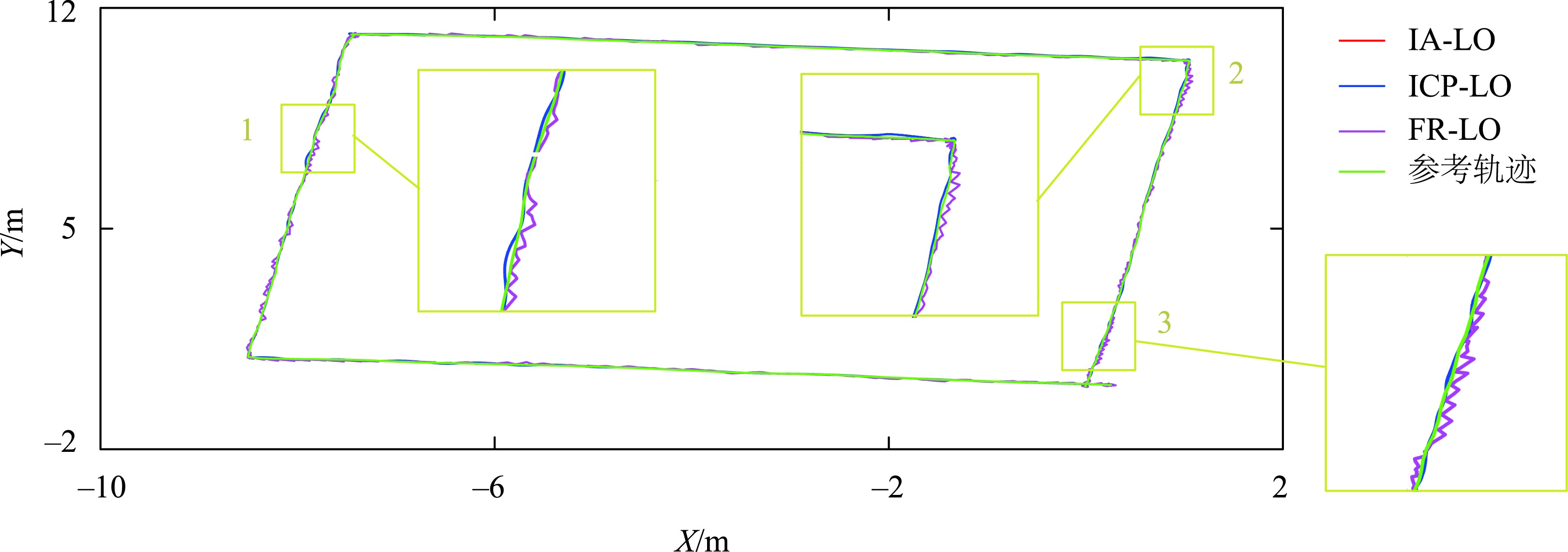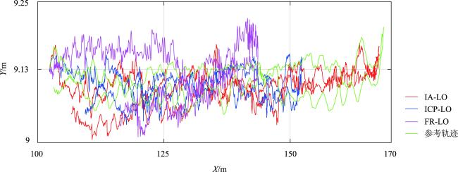 图9 场景3中3种里程计的X-Y平面二维定位轨迹对比Fig. 9 Comparison of X-Y plane positioning trajectory of three odometries in scene 3 |