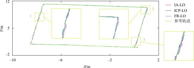 表3 场景1中3种里程计的二维定位精度和处理效率对比Tab. 3 Comparison of two-dimensional positioning accuracy and processing efficiency of three odometries in scene 1 |