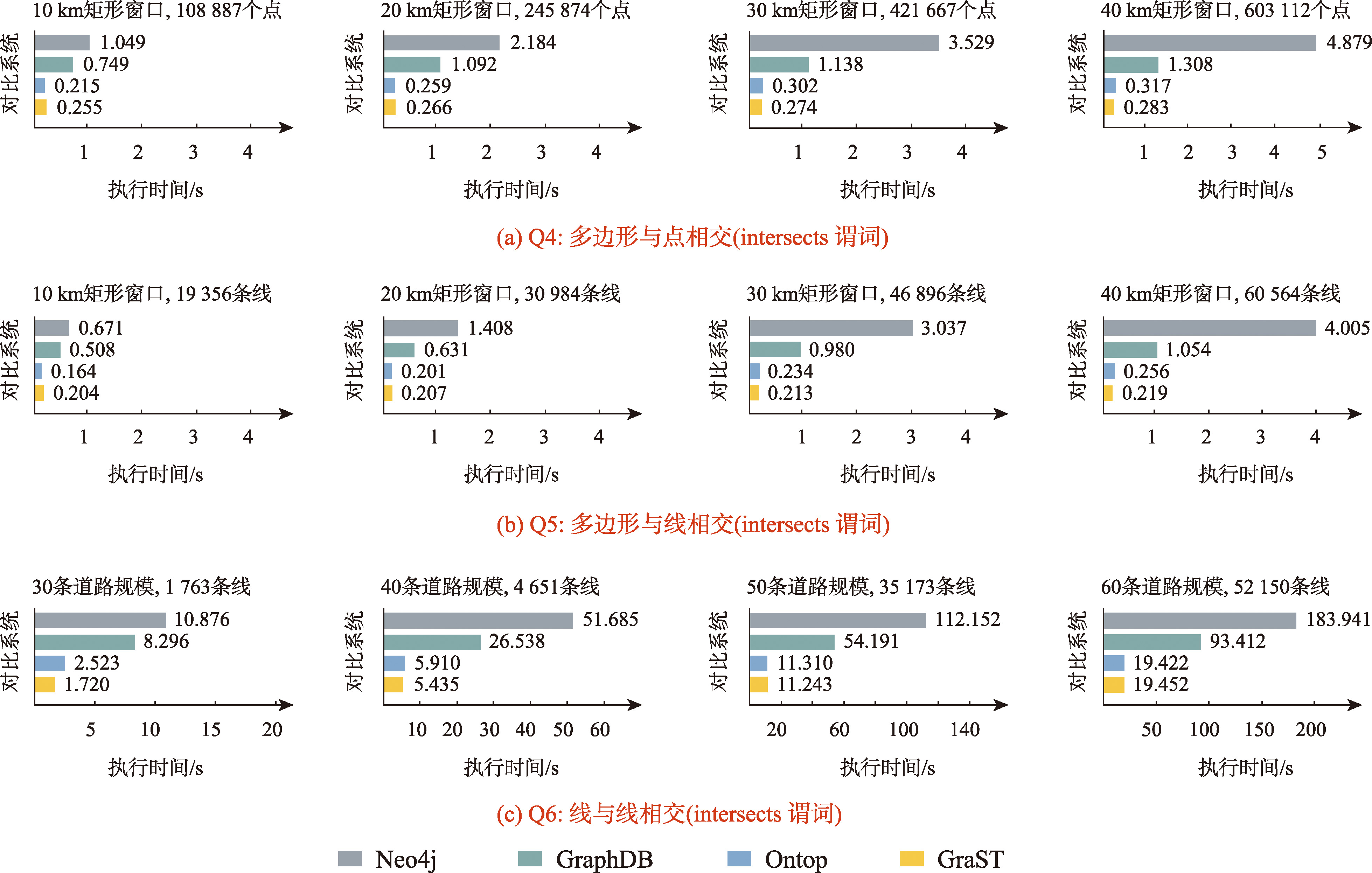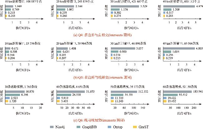 | Q6 | Line intersection | 查询与不同规模道路网络数据子集相交的单车轨迹,其中道路网络数据子集序列为30、40、50、60条 |
