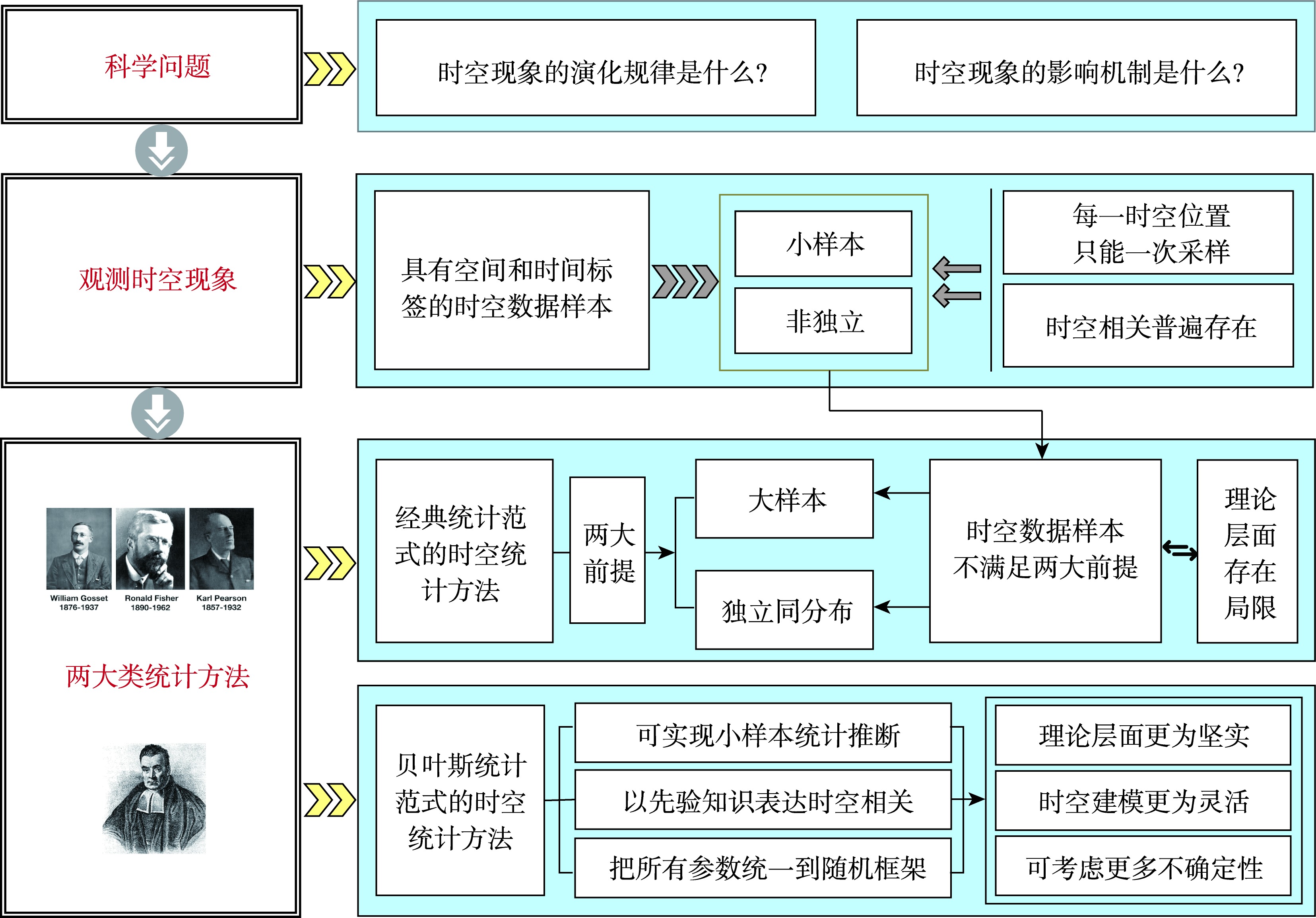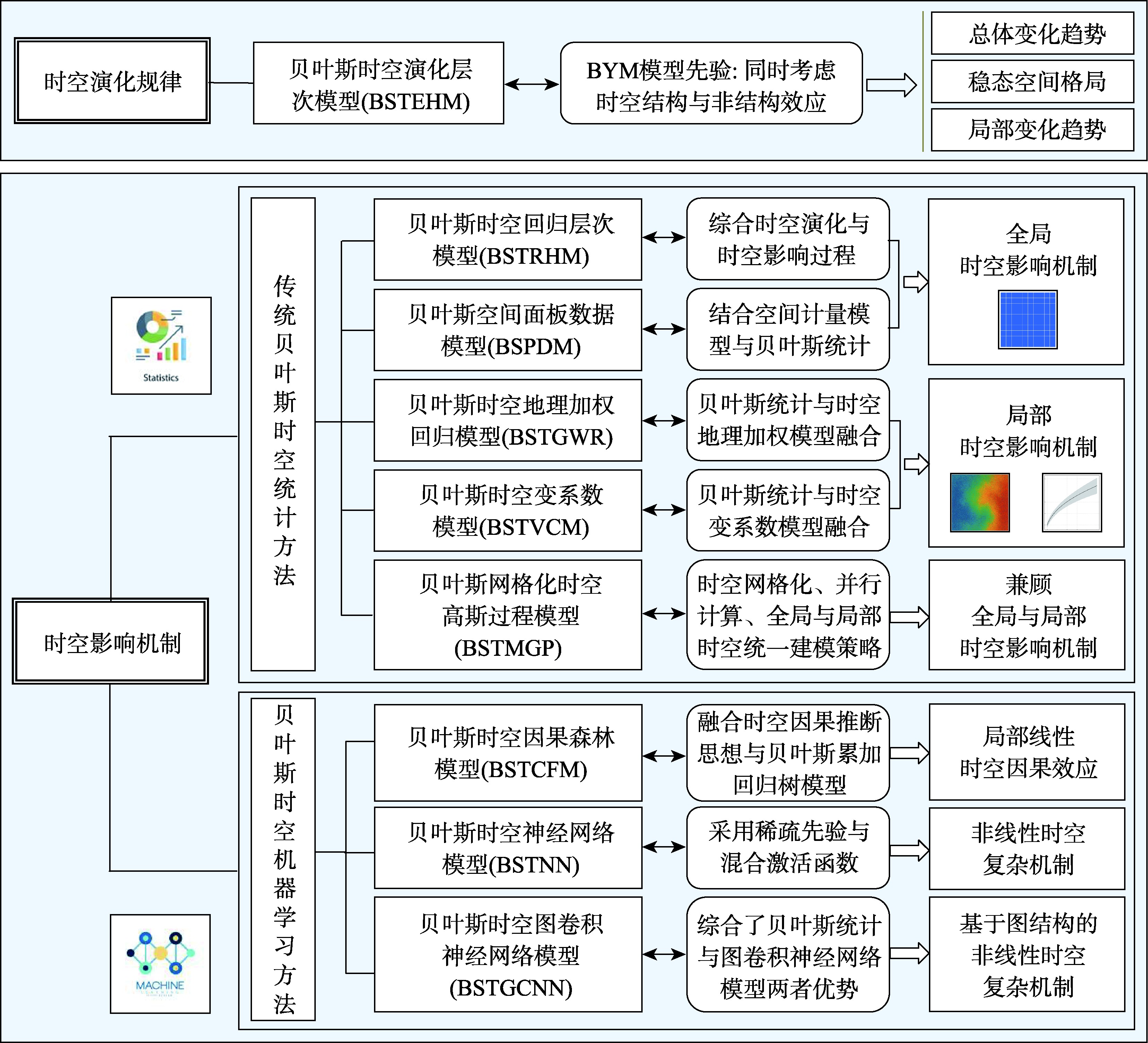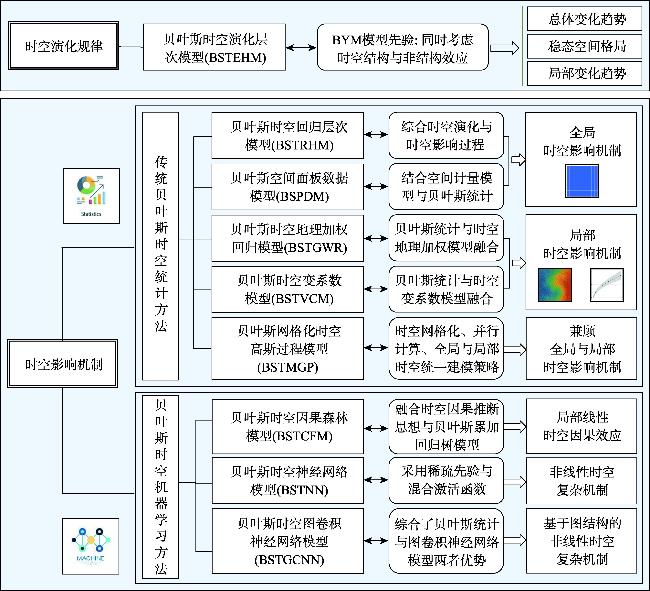传统统计模型 | 时空演化规律分析类 | 贝叶斯时空演化层次模型 (BSTEHM) | 可以捕捉总体和局部时空演化趋势 | 无法揭示时空影响机制 |