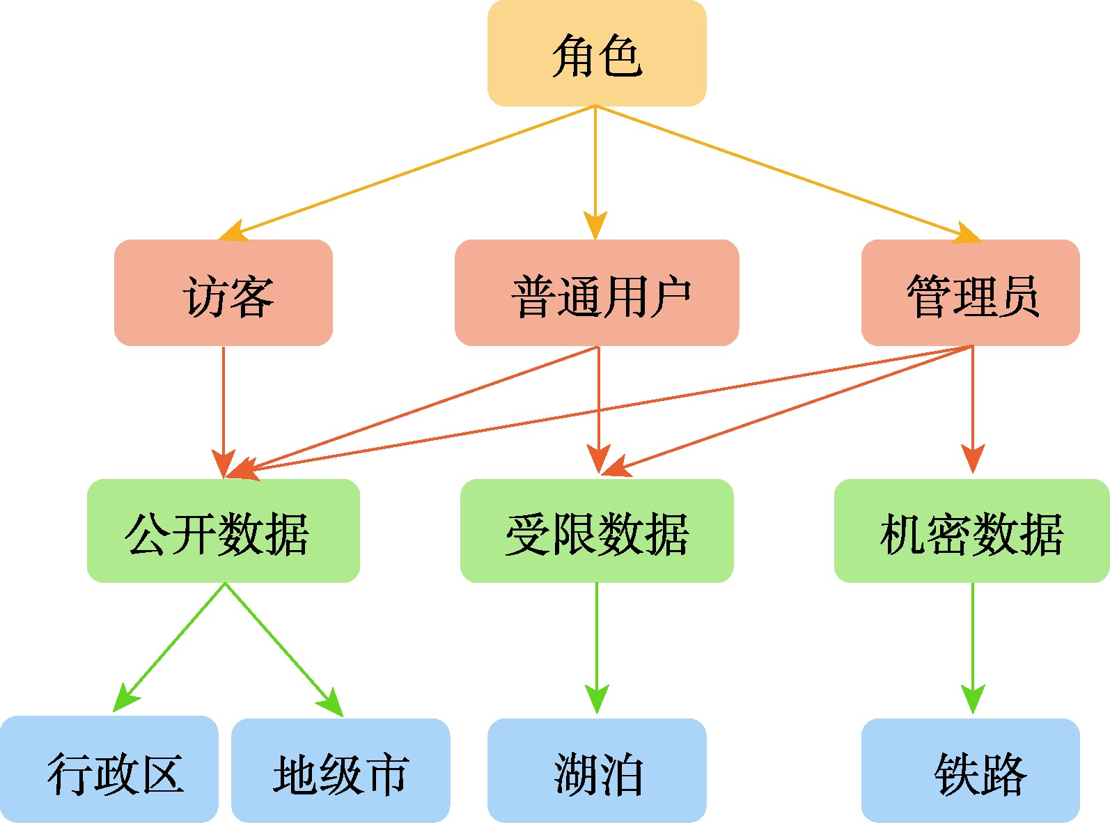 | 访问控制粒度 | 要素级 | 图层级 | 数据层级 | 图层级 |