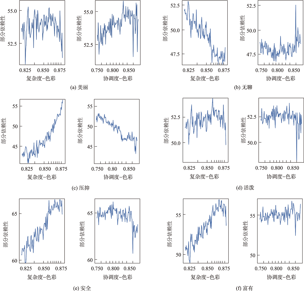 色彩复杂度(左)和协调度(右)对情感的偏依赖关系