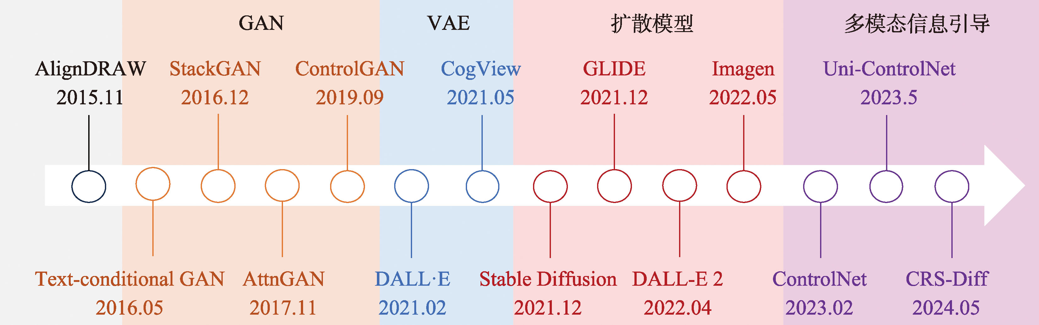 不同时期的代表性文生图模型:基于GAN、VAE、扩散模型和多模态信息引导的方法