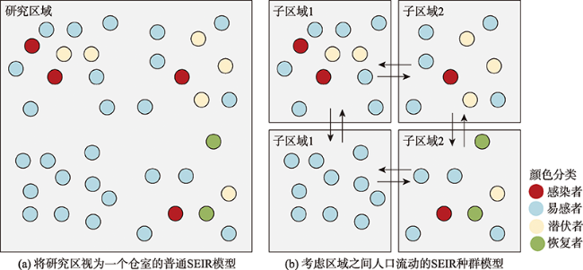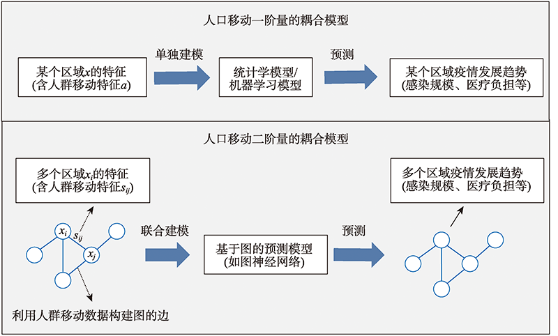 图1 面向疫情短期预测的人群移动耦合模型示意Fig. 1 Short-term epidemic prediction models coupled with human mobility |