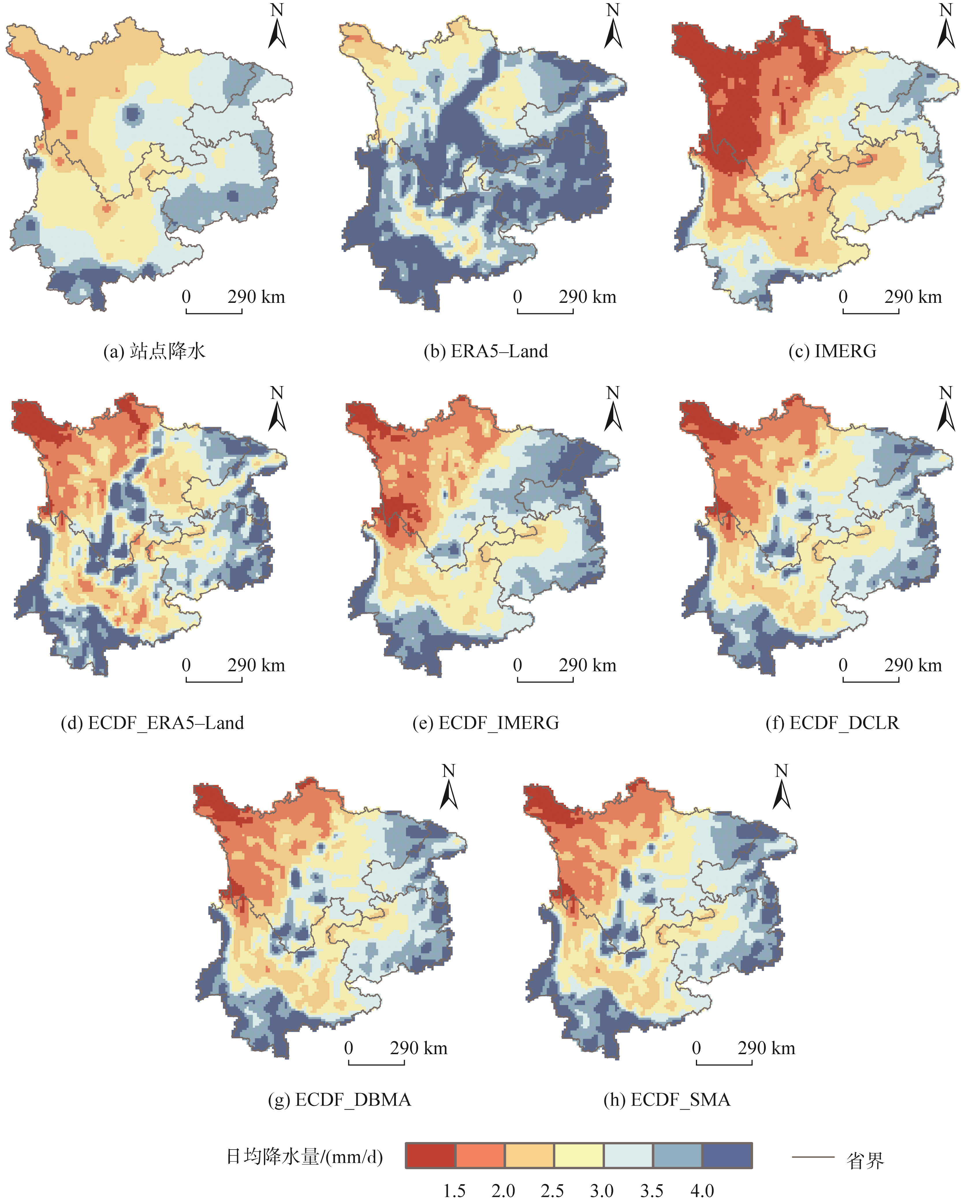 表1 西南地区2005—2017年各个降水产品与验证站点数据的评价指标Tab. 1 Evaluation indicators of precipitation products against validation station observations in Southwest China from 2005 to 2017 |