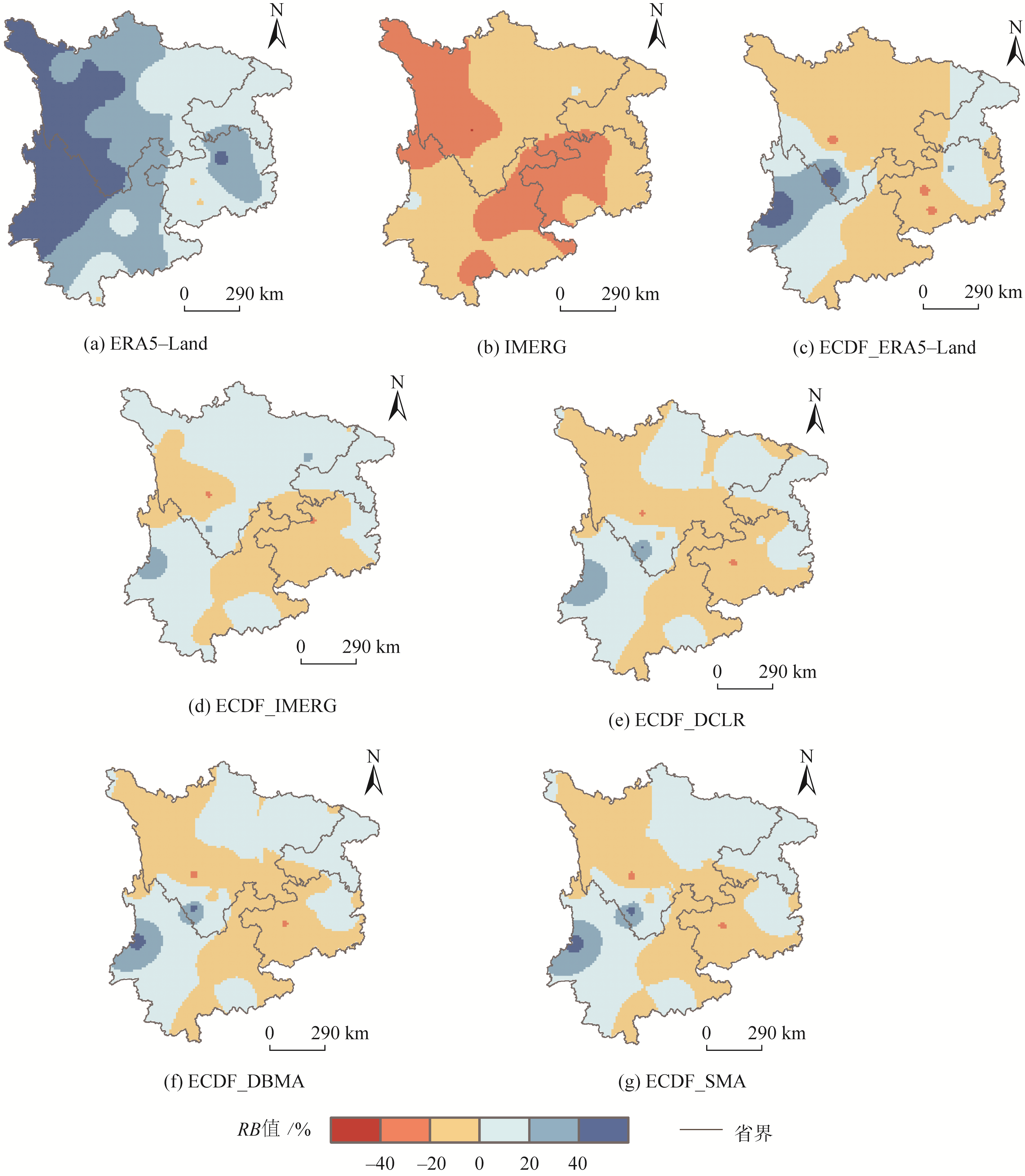 图7 西南地区各个降水产品RB空间分布Fig. 7 Spatial distribution of RB for precipitation products in Southwest China |