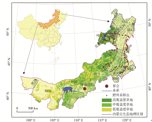 | Fig. 1 Eco-geographical regionalization, field samples and grassland distribution in Inner Mongolia in 2010 |