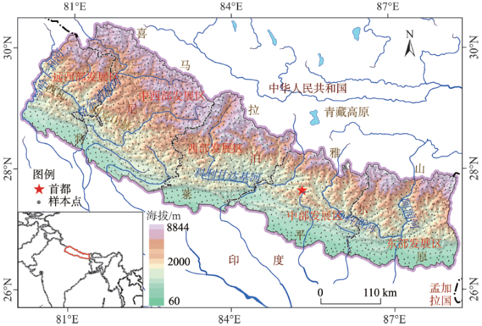 图1 尼泊尔的地理位置和验证样本点空间分布