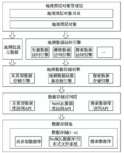 其包括数据存储池、数据存储访问层、地理数据存储引擎3部分。
