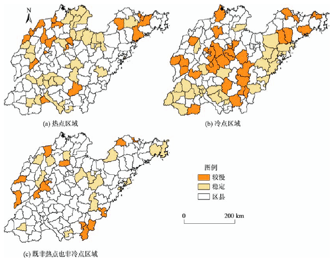图6 热点、冷点以及既非热点也非冷点区域各区县发病风险潜在变化趋势