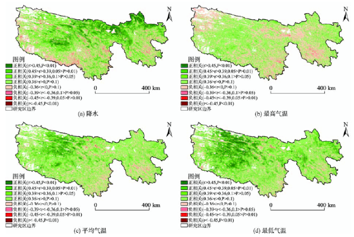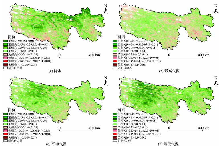 (2)文中关于气候因子对植被NDVI影响的研究,仍局限于统计上的相关分析,无法从机理上揭示植被生长状况与气候因子之间的内在联系,需要继续进行长期和系统的观测与实验,并借助于机理模型来加强认识和理解,从而能够在未来定量地预测植被变化的方向与强度。