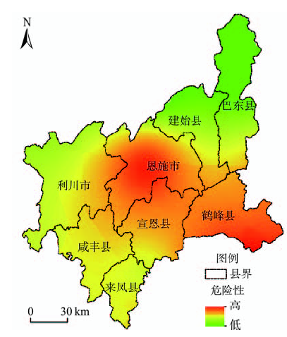 Fig. 6 Spatial pattern of the rainstorm-induced geological hazards risk in Enshi Autonomous Prefecture