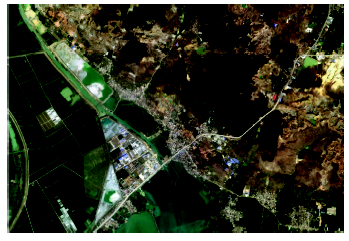 本文实验所用数据为国产资源三号卫星多光谱遥感影像,数据获取时间为2013年3月18日,影像分辨率为5.8 m。图3为经辐射校正与几何校正后的上窑镇研究区的数据影像,其覆盖范围约为62 km2。