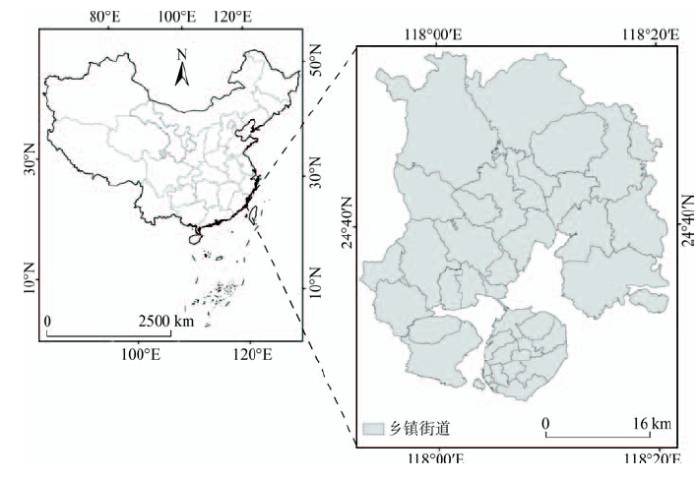 厦门市位于东经118°03′~118°13′,北纬24°26′~24°28′之间,地处中国东南沿海(图1)。其属于亚热带海洋性季风气候,温和多雨,年平均降水量在1200 mm左右,年平均气温在21 ℃左右。至2013年末,全市土地面积1573.16 km²,常住人口数量373万人[24]。厦门市是中国最早建立的经济特区之一,其快速的城市化进程引起了显著的热岛现象[25-26];另外,受西太平洋副热带高压的影响,在夏季时常出现高温热浪天气。根据气象站资料统计,1974-2014年厦门共发生26次高温热浪事件,对居民生活和健康产生了很大影响。因此,分析厦门市高温热浪人群健康风险的空间格局很有必要,以便为城市预防和应对高温热浪提供决策依据。