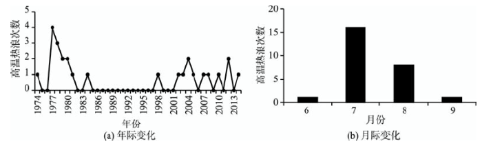 图2 厦门市高温热浪时序变化注:图(b)仅列出发生高温热浪时间的月份