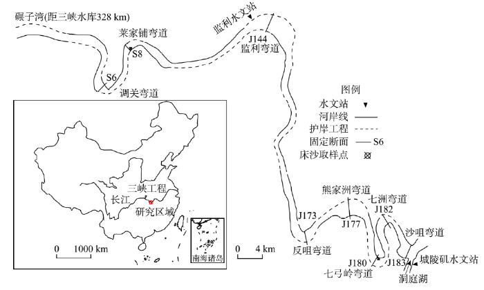 弯曲河型是冲积河流中最为常见的河型之一,其凹凸岸滩槽分布格局,对航道条件有着重要的影响[1],而弯曲率较大的急弯段,又是防洪控制的重点区域[2-3],历来受到水利部门、航道部门的密切关注。弯曲河型的河床形态对于水库水沙调节作用的响应较为敏感[4-5],研究水库下游弯曲河型的演变规律调整及其驱动机制,不仅对于河道防洪、航运等具有重要的实践意义,而且对水库下游河床调整研究有重要的理论价值。