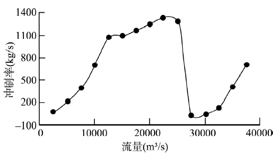 Fig. 5 The erosion intensity of different discharges insandy bed of Jingjiang River[