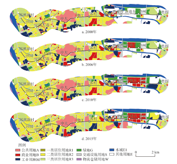 图2. 广州地铁八号线沿线各年土地利用分布图