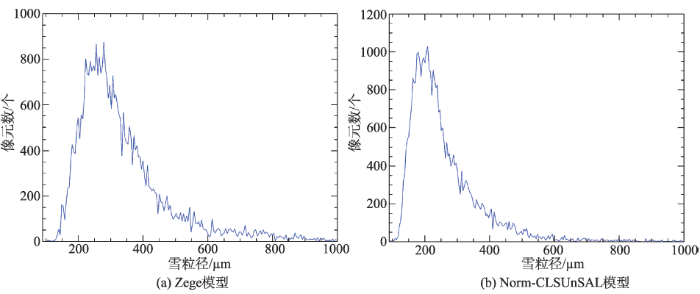 图9 Zege模型与Norm-CLSUnSAL模型反演的雪粒径统计分布