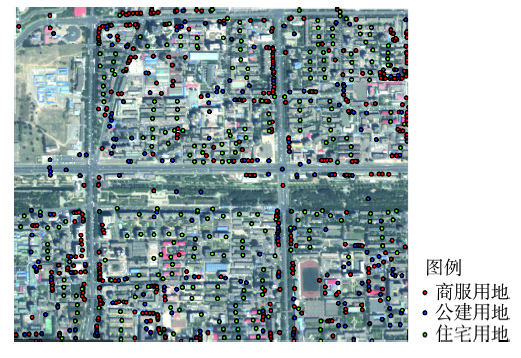 (3)住宅用地,指用于建造居民居住用房屋所占用的土地,可分为城镇住宅用地以及农村宅基地。由于本研究只涉及城市建筑物,本文提到的住宅用地特指城镇住宅用地,在原始POI数据中将住宅小区定义为住宅用地。