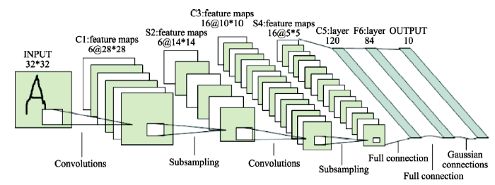 CNN的基本结构一般包括输入层、卷积层、下采样层(也被称作池化层)、全连接层及输出层(图5)。其中,卷积层、下采样层(也被称作池化层)、全连接层可统称为隐含层。CNN方法将图像的一小部分作为层级结构的最底层的输入,信息依次传输到不同的层,每层通过一个数字滤波器获得前一层数据的最显著特征。通过对目标的多层学习形成新的识别模型,利用建立的模型对输入影像进行识别。