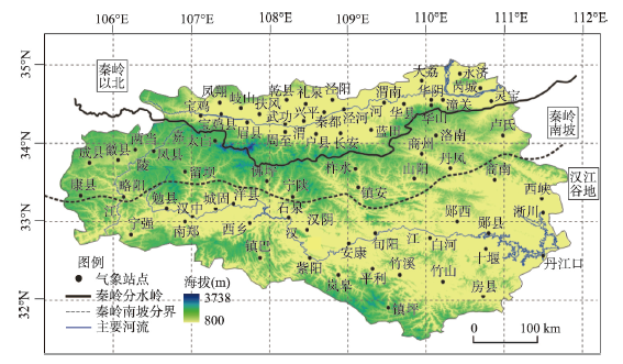 图1 秦岭南北研究范围及气象站点分布