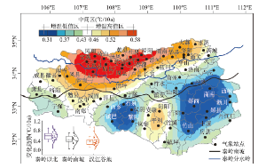(2)在空间变化上,秦岭南北气温变化趋势呈现“同步增温,南北分异”。东段以分水岭为分界,西段以秦岭南麓1000 m等高线为分界,界线以北气温空间变化具有一致性,界线以南地区则呈现两个增温低值中心,即“西乡—安康盆地交界”低值中心、“商丹盆地”低值中心。秦岭南北增温“北强南弱”的空间分异,可能与20世纪90年代初东亚夏季对流层温度、中部型ENSO事件活跃、青藏高原冬季积雪年代转折有密切的关系。