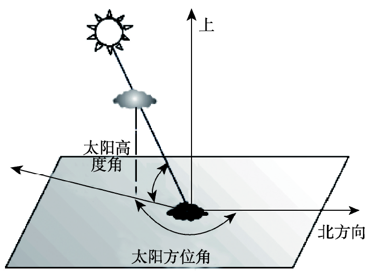 | 图2 太阳高度角和太阳方位角对云和云影水平距离和相对方向的影响 |
