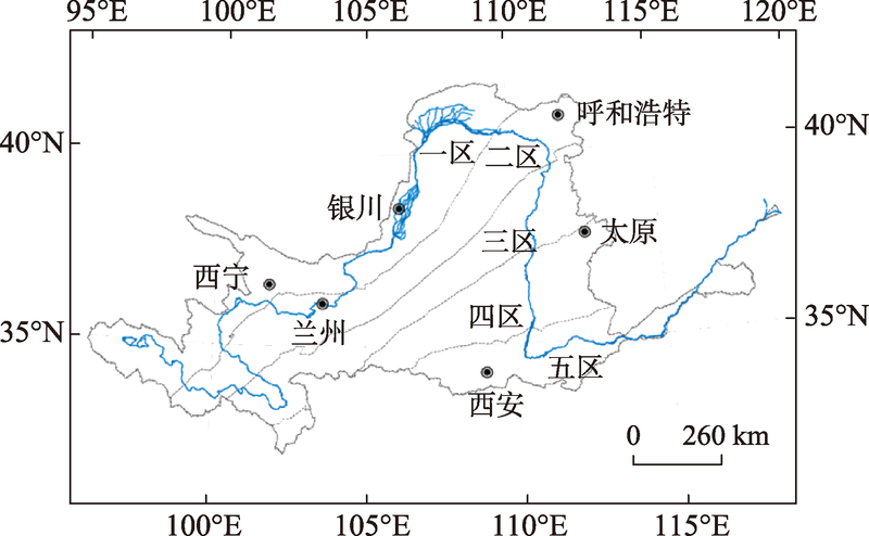 黄河流域位于北纬32°~42°、东经96°~119°,西起巴彦喀拉山,东临渤海,南至秦岭,北抵阴山,流域面积79.5万km2[11]。黄河流域幅员辽阔,属于大陆性季风气候区,受大气环流和季风环流影响,气候比较复杂,流域内不同地区降水差异较大[12]。多年平均降水量为460 mm,受地形等因素的影响,降水分布由东南向西北递减[13]。