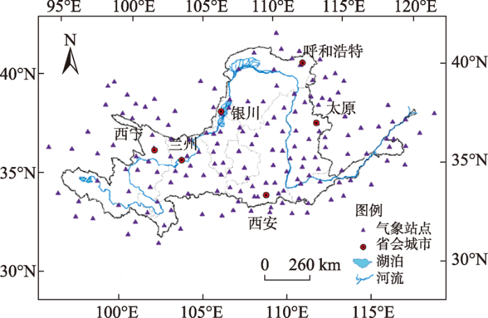 本研究选取了1980-2015年黄河流域区内90个气象站以及其周边地区79个气象站的逐日降雨量数据(图1)。剔除2个部分长度不足36年和1个海拔值异常的站台数据。数据由中国气象科学数据共享服务网平台提供(http://data.cma.cn/),其质量可靠。