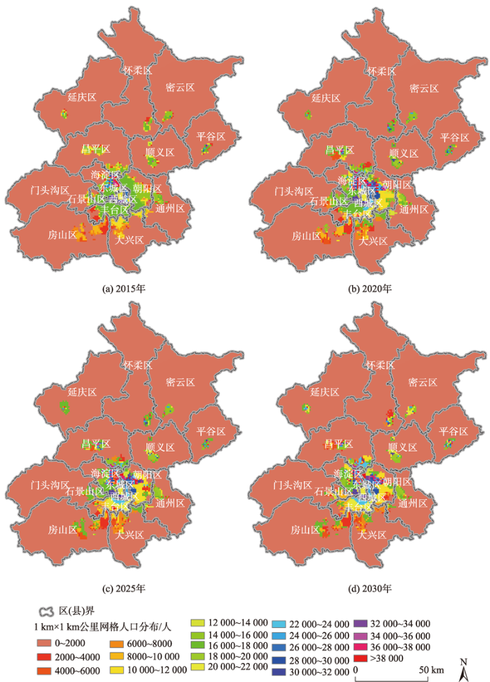 Fig. 3 Spatial distribution of population in Beijing during 2015-2030