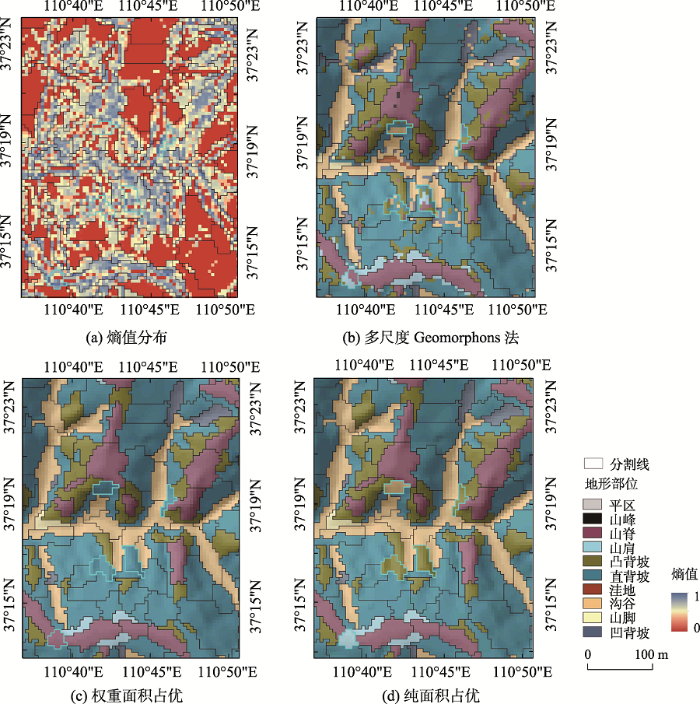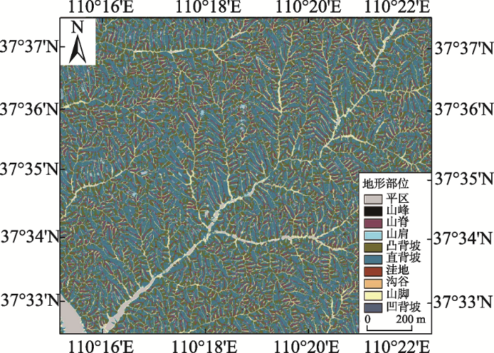作为地表形态的基本单元,地形部位是指在一定尺度下由地形属性特征相似且空间邻近的单元组合形成的区域[1,2]。不同的地形部位组合构成了形态多样的地形坡面,进而形成了特征迥异的地貌类型。通常土壤、水文以及植被等地理过程随着地形部位的变化而变化,甚至突变。因此,地形部位分类和提取是研究地貌发育、土壤侵蚀和调查、景观生态分类与制图,以及分布水文模型等方面的基础[3,4,5,6,7]。