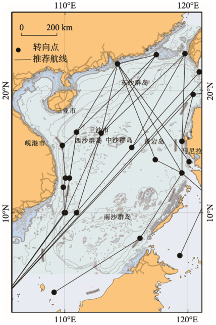 Fig. 1 Main recommended routes for merchant vessels in South China Sea