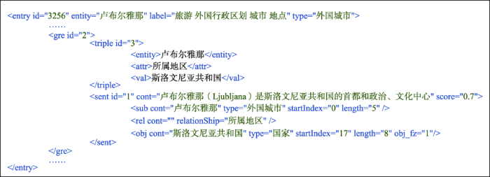 | 空间关系 | 80 | 地理位置、地理区域、包含景点、包含高校、临近火车站、途经城市、过境公路、流经地区、连接城市、源头、所属城市、临近机场等 | 230 | 地理位置、位于、注入、主要景区、所属国家、途经、流经地区、所属山系 | |