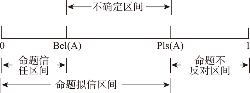 综上可知, Pls ( A ) ≥ Bel ( A ) , Pls ( A ) - Bel ( A ) 表示子系统故障类型为故障A的不确定度,如图3 所示。不确定度产生的原因是 Θ 中出现了多元素命题[20 ] ,于本文为模糊不清的多可能性故障,如 Θ = { ABC ( AB ) ( AC ) ( BC ) ( ABC ) } ,其中A,B, C为单元素命题,其他为多元素命题。