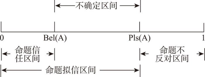 ... 综上可知, Pls ( A ) ≥ Bel ( A ) , Pls ( A ) - Bel ( A ) 表示子系统故障类型为故障A的不确定度,如图3 所示.不确定度产生的原因是 Θ 中出现了多元素命题[20 ] ,于本文为模糊不清的多可能性故障,如 Θ = { ABC ( AB ) ( AC ) ( BC ) ( ABC ) } ,其中A,B, C为单元素命题,其他为多元素命题. ...
