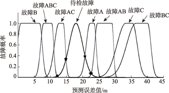 ... 在实际的量测或实验中,由于受测量环境、场合、地点等因素的影响,测得的实验数据会具有随机误差和故障模糊性,因此可以从实验数据中提取故障特征来构造隶属度函数,从而与模板隶属度函数库做匹配,得出其隶属于各种运行故障的概 率[19 ] .由于无人机组合测量系统的传感器误差可近似为白噪声,其量测值具有高斯分布的形式,因此本文考虑使用正态分布结构来构造隶属度函数. ...