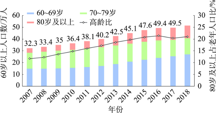 Elderly population structure changes of Haidian District from 2007 to 2018