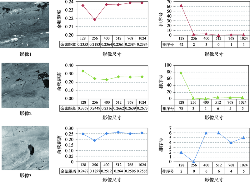 | 图13 不同分辨率的查询影像对应的余弦距离及排序号变化 |