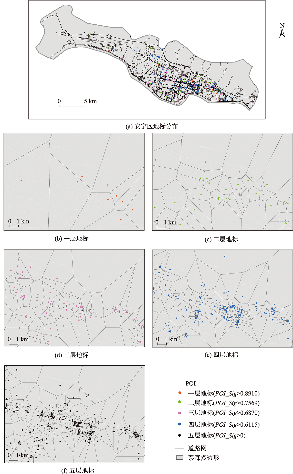 Fig. 4 Distribution of landmarks by level in Anning District, Lanzhou City |