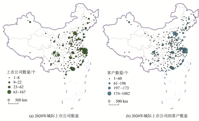 梳理现有研究发现:在研究方法方面,基于企业视角的城市网络研究,大部分采用企业内部联系来构建城市网络,但这类研究建立在任意企业存在总部和分支机构的假设基础之上,且网络在转译过程存在信息损失的情况;在研究对象尺度方面,更多关注于全国城市网络的空间结构,对城市群多尺度的网络分析还不足;在研究时序方面,侧重于单一时间节点城市网络空间格局研究,对城市网络的时空演化研究不够。上市公司作为市场主体中最活跃、最具代表性和影响力的群体,其数量和规模一定程度上反映了区域的经济活力,而上市公司与其客户的贸易关系是城市贸易网络的重要组成部分。鉴于此,本文基于上市公司与其前五大企业客户的贸易流数据,将企业间贸易网络转化为城市联系网络,基于全国和城市群两个尺度分析城市网络的结构演变特征。