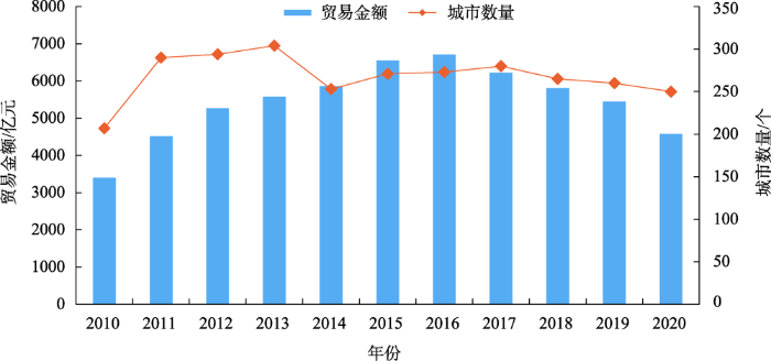 Changes of China's inter city trade flow and node number from 2010 to 2020