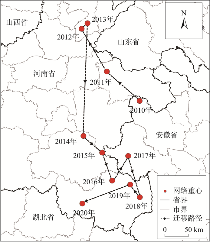 | Fig. 4 Annual change trend of China's urban network center from 2010 to 2020 |