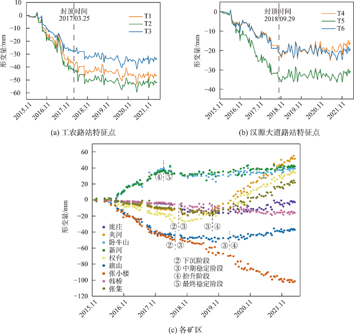 2015—2022年地铁沿线特征点及各矿区形变时间序列