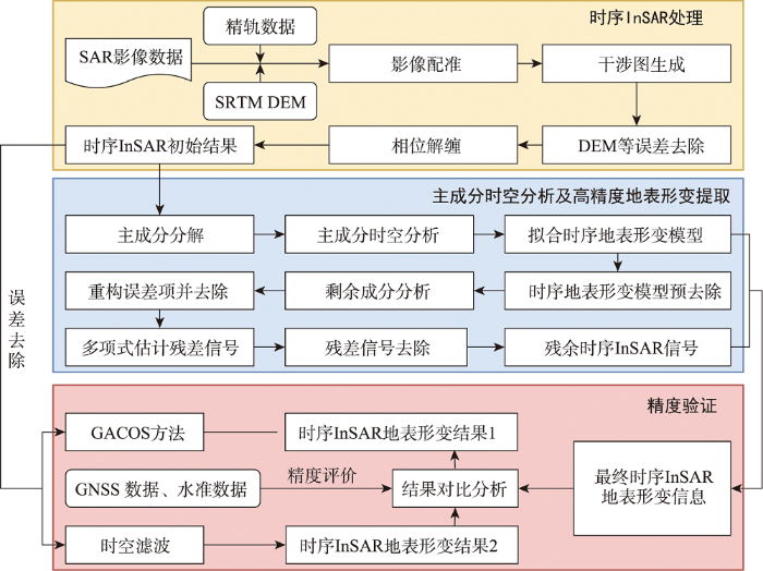 融合主成分时空分析与时序InSAR的高精度地表形变信息提取技术路线