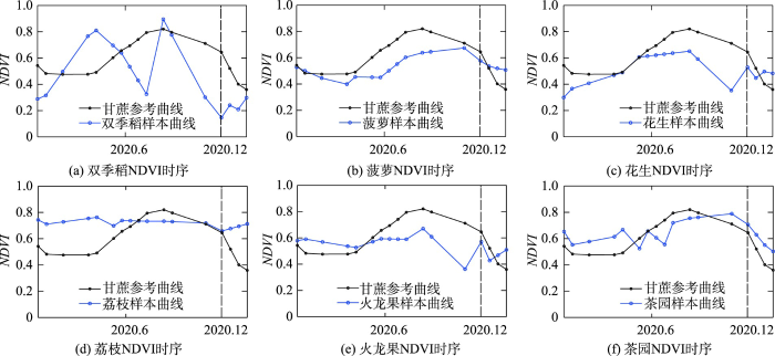 (2)本研究以NDVI时序曲线作为判别甘蔗的特征,但是部分园地、荒地等其他地类与甘蔗NDVI时序曲线形态存在相似性,导致误判为甘蔗类型,后续研究将开展植被指数的筛选和构建,选择敏感特征,丰富特征维度,有助于提高识别精度。